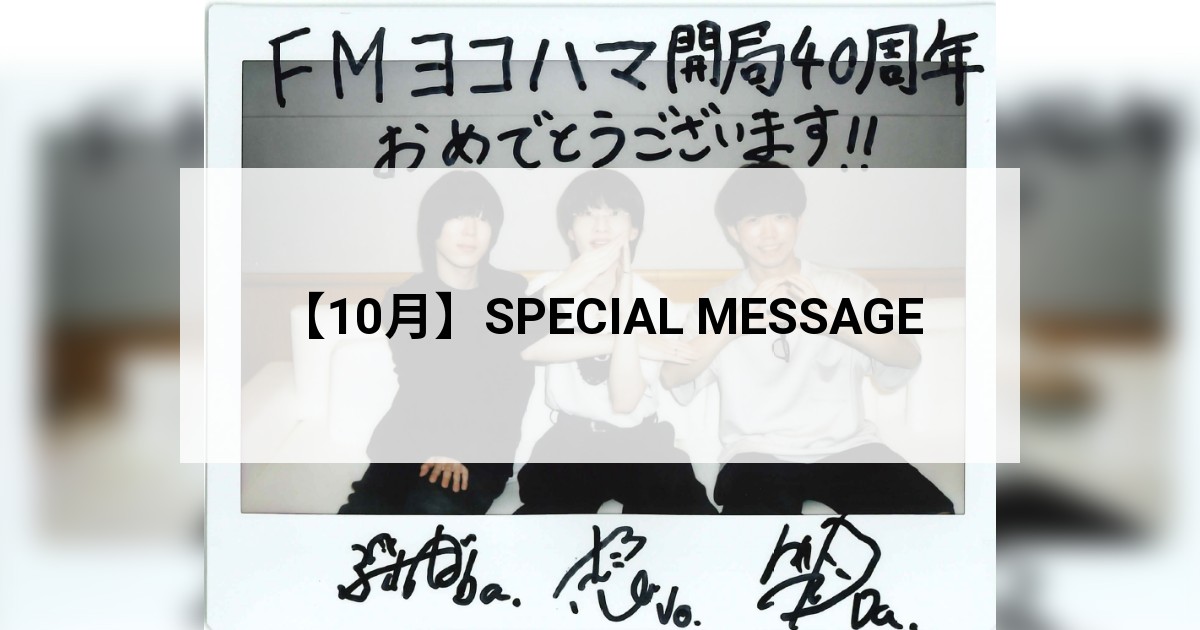 【10月】SPECIAL MESSAGE ★DJの方からお祝いメッセ―ジをいただきました! 石塚英彦 ON AIR中 ジェイワンホームズ 心にまいう~ 一輪・二輪・サンバ! 【FRI】5:45~6:00 REIJI / 八村倫太郎(WATWING) ON AIR中 ZERO-8【FRI】22:00~ 23:30