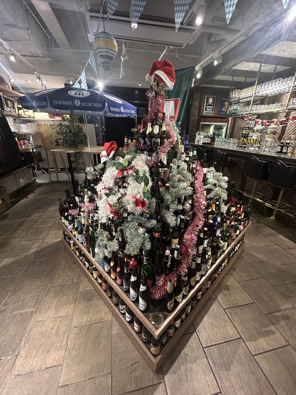 瓶ビールで作られたクリスマスツリーがめちゃめちゃ綺麗で思わずパシャリ🎄⛄️