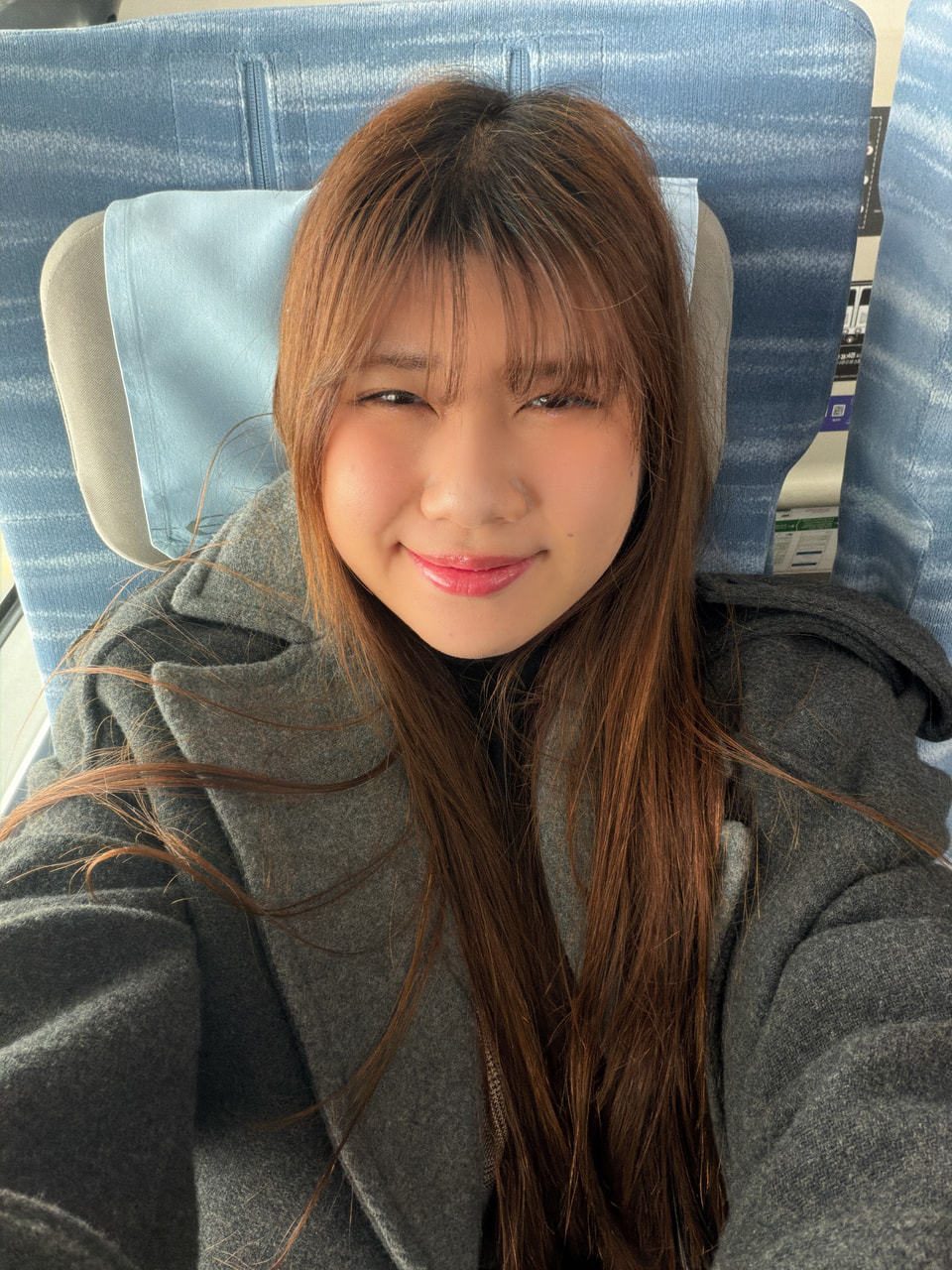 今日の写真は、ある日突然ちょっと贅沢したくなって、特急電車に乗った時の大満足の私です。笑