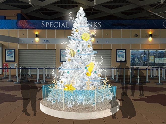 2つ目は、「えのすいクリスマス」も同時にスタート!水族館の入り口には、サンゴをイメージした大きなホワイトツリーが登場。館内はデンキウナギのイルミネーション点灯やクリスマスフードメニューも!もみの木デザインのカメロンパンは「ショコラ」と「いちご」の味が登場。クリスマスも、えのすいをたっぷり楽しんで!