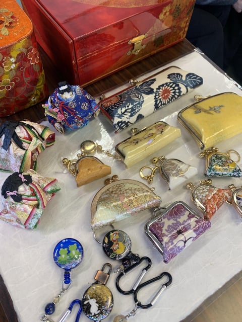 家具類、箱、アクセサリーなどの実用品から人形、折り絵など多種多様な作品をみせていただきました。