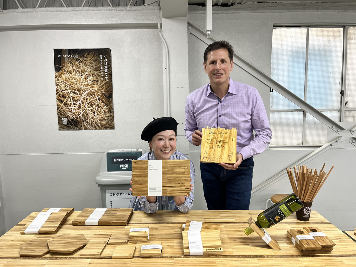 創業者フェリックス・ベックさんは、ドイツで木工学を学び、竹素材の研究開発者。2016年に奥様との食事の際に、使い捨ての割りばしを何かにアップサイクルできないかと、「アーバン・ハーベスティング(Urban Harvesting )」を目指し事業をスタートさせます。現在はカナダをはじめ、アメリカ、イギリス、メキシコ、シンガポール、インドネシア、マレーシア、フィリピンと広がり、日本は9カ国目。すでに世界では2億本もの割りばしをアップサイクルしてきましたが、ここ関東では一日に約2700本が消費されているだけに、日本でポテンシャルはとても高いということ。