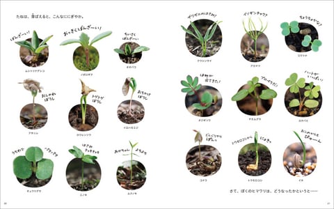 今回の写真絵本に登場する種の種類は全部で64。私たち身近にありながら、種を見たことがないものまで、様々な植物が登場しています。一回登場してきたものが、また別のシーンでなるべく登場しないよう、純さんはこだわって作ったそうです。また、鈴木純さんは、一見生き物に見えない種がどんな変化をしていくのかも知って欲しくて、落ちた種から、芽生え、驚きの成長から、立ち枯れている姿、そして、再び種となる、冬枯れの景色の中にも次の春へのバトンがあることを感じさせてくれる、温かいメッセージが込められた一冊となっています。