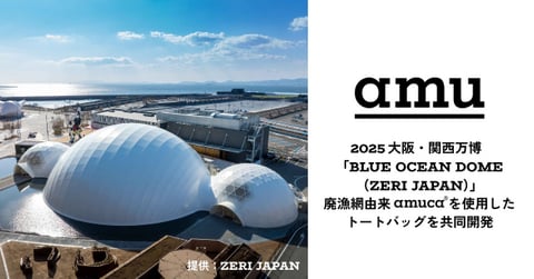 人気アパレルブランド「アーバンリサーチ」が、amucaⓇ素材を採用したセットアップとトートバッグを製作、2025年大阪・関西万博の「セービングゾーン」エリアの「URBAN RESEARCH EXPO2025 STORE」にて、数量・期間限定で販売。すべての製品にはQRコード付きのタグが添えられ、どこの港で回収された漁具なのかという「旅の軌跡」を確認できます。会場では、海外からのお客様にとても人気だったとのこと。amuでは、環境への配慮が「当たり前」になる時代に、愛着を感じさせる情報発信を大切にしています。