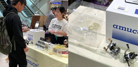 その点については、加藤さんから、「エコだから」という理由だけで選ぶのではなく、まず「かっこいい」「おしゃれ」という直感(右脳)で手に取ってもらうことを最優先。その後に、タグやQRコードを通じて「漁網由来」というストーリー(左脳)を知ることで、商品やブランドへの愛着を深めてもらうという、amu独自のものづくり哲学を大切にしてるとお話されていました。