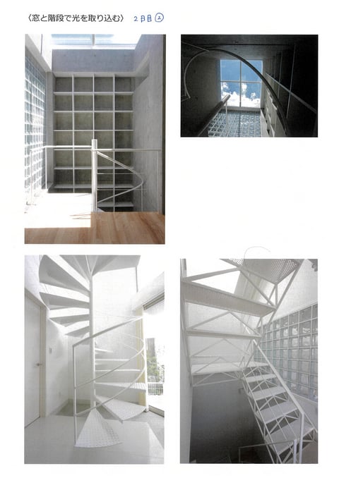 階段は「通路」ではなく「光の筒」に。周りが家で囲まれている密集地でも光を取り入れる方法の一つとして、階段の真上に設けられた「トップライト(天窓)」。