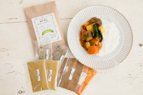 ネパールの家庭の味であるスパイスを、日本のお野菜の水分量や私たちの味覚に合わせて特別にブレンド。山奥の厳しい環境で育ったスパイスを、カトマンズの女性たちが丁寧に加工しパッキングしています。
