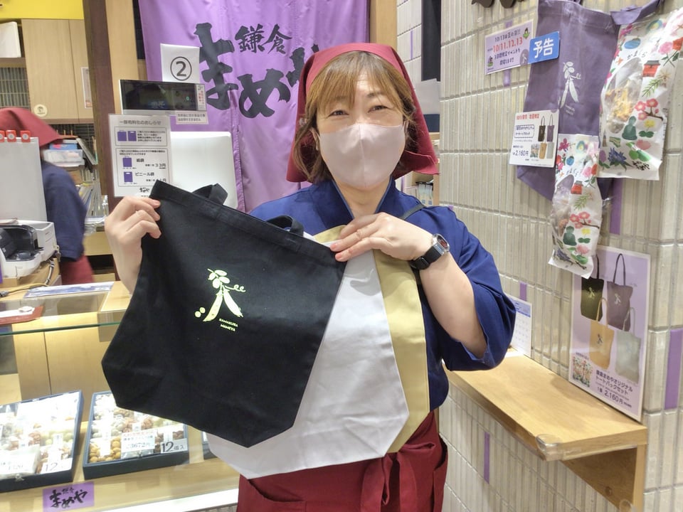 ・鎌倉まめやオリジナルトートバッグ 黒、グレー、黄色、白の4色