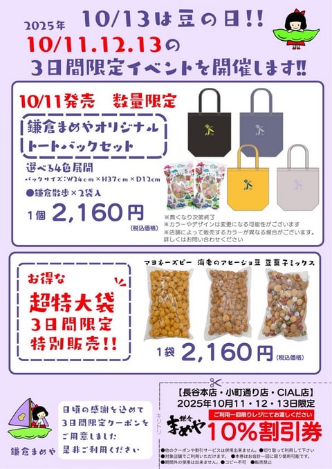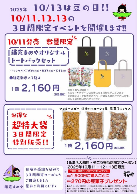 10月13日(月祝)は豆の日、ということでイベントを開催予定です!