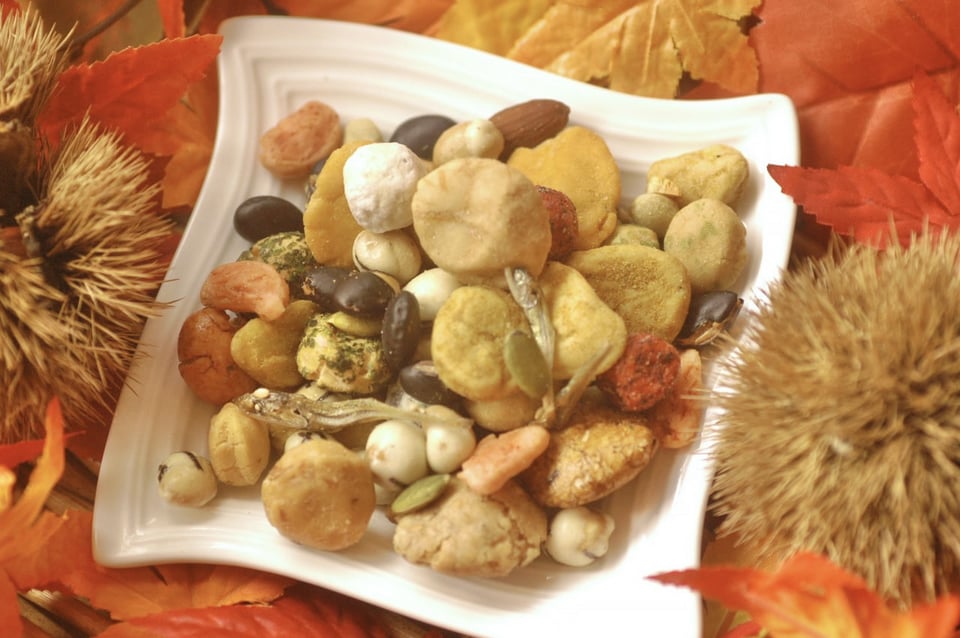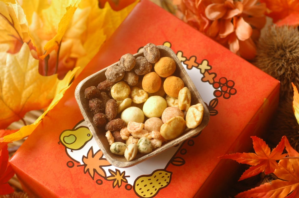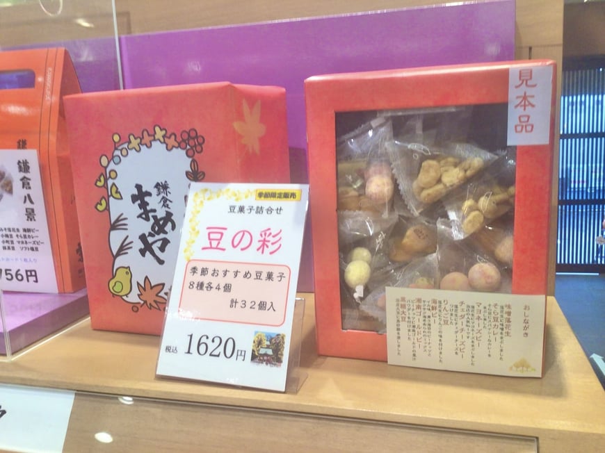 丸山さん:「20種類以上の豆菓子、小魚、ナッツ類が楽しんでいただけるお品です。人気のマヨネーズの他にもパンプキン、ひまわりの種なども入っていて新しいお気に入りを見つけていただけると思います。私は最初の1周は1つずつ並べて食べたりしています(2週目は待ちきれずにパクパクいってしまいますが…)。パッケージもおすすめです。江の島と雪の富士山が鎌倉の海岸線とともに描かれています。お土産にも喜んでいただけると思います」