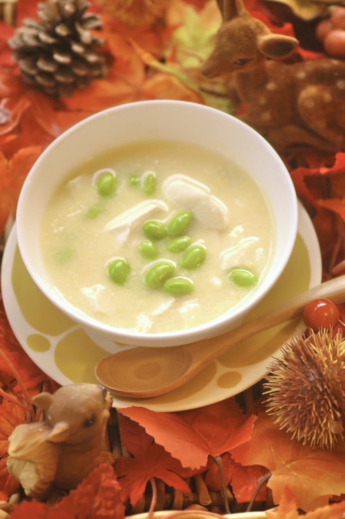 「お豆腐の甘みが感じられて、卵もふわっとしていて美味しいです。枝豆があると色合いも綺麗ですね。中華だしだけで味付け出来るのも手軽でいいです」![]()