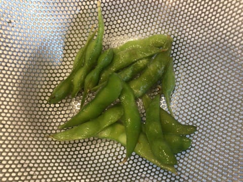 1)冷凍の枝豆を解凍して莢から出す。![]()