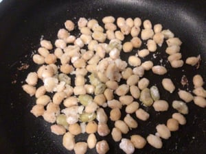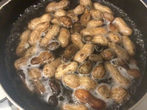 1)生落花生を洗い、水と塩と一緒に鍋に入れ、火にかける。![]()