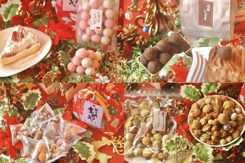 鎌倉まめやでは12月限定の「いちごのショートケーキ豆」(税込432円)や季節限定の「濃厚ショコラピー」(税込486円)、クリスマスのアソートセット「クリスマスセット」(税込864円)等、クリスマス向けの豆菓子を取り揃えています。