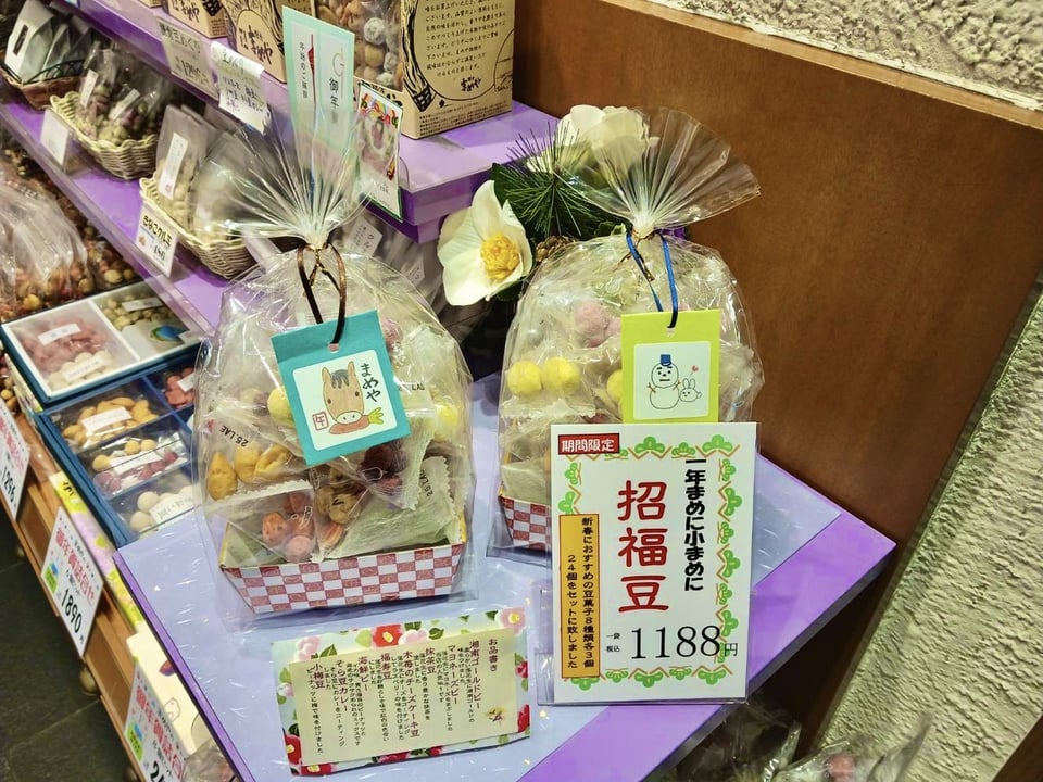 年始のご挨拶用のギフトやご自宅でお客様を迎える際のお茶菓子等、美味しい豆菓子をお求めの際には、鎌倉まめや長谷本店、小町通り店、シァル鎌倉店、そごう横浜店、ルミネ大船店や鎌倉まめやオンラインショップ (mame-mame.com)をご利用くださいませ。