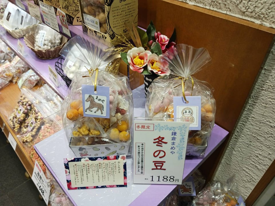節分豆や季節のご挨拶に贈るギフト等、美味しい豆菓子をお求めの際には、鎌倉まめや長谷本店、小町通り店、シァル鎌倉店、そごう横浜店、ルミネ大船店や鎌倉まめやオンラインショップ (mame-mame.com)をご利用くださいませ。