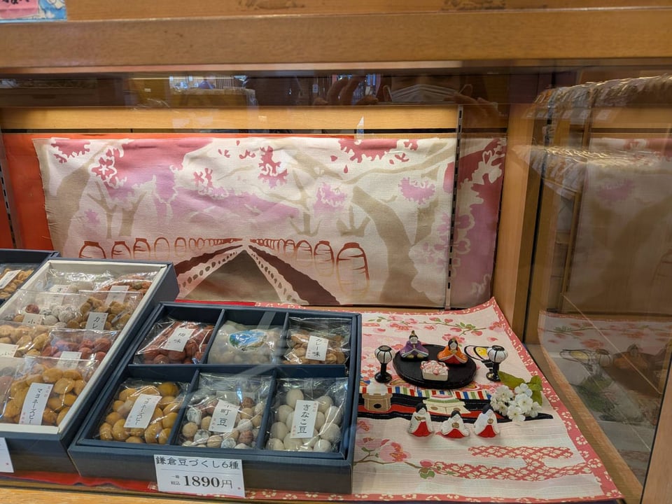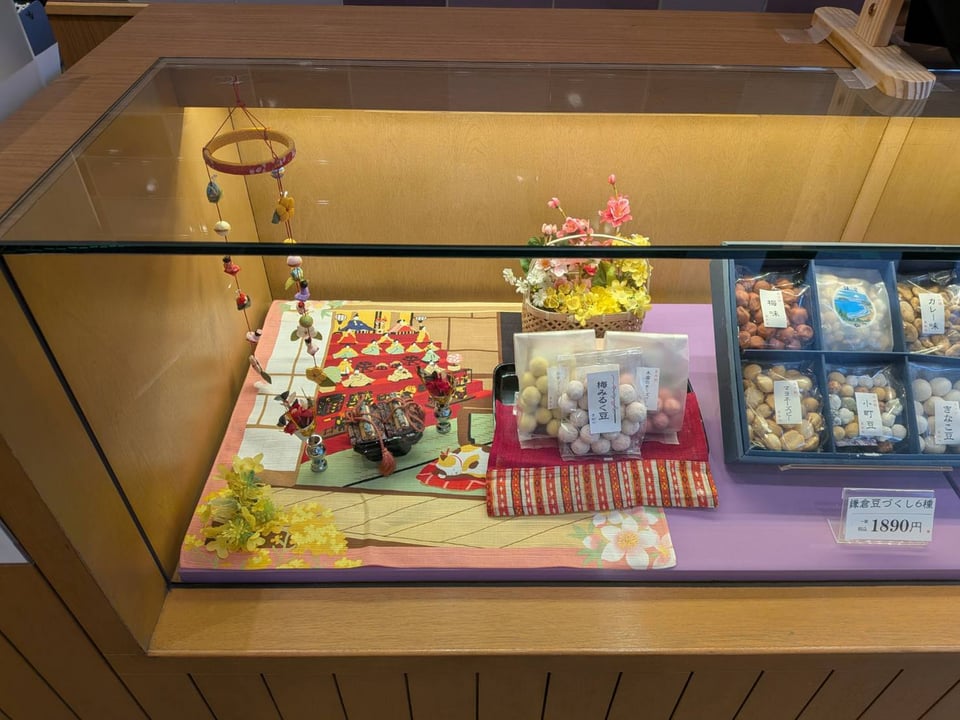 鎌倉まめや小町通り店の店内は桃の節句の早春らしい柔らかな色合いに変わっています。![]()