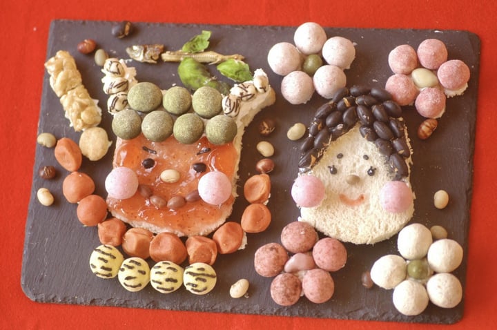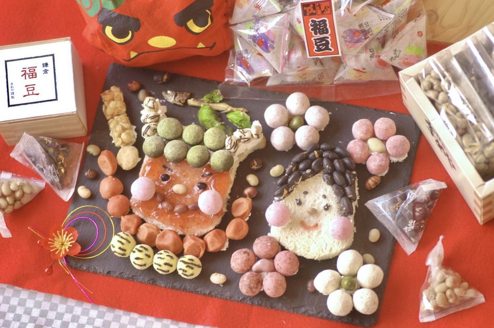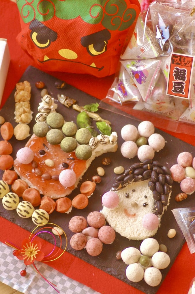「お豆さん×食パンの節分デコレーション~鬼さんと福の神~」