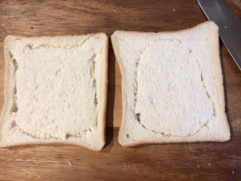 1)食パンは鬼さんと福の神の形にナイフで切る。![]()