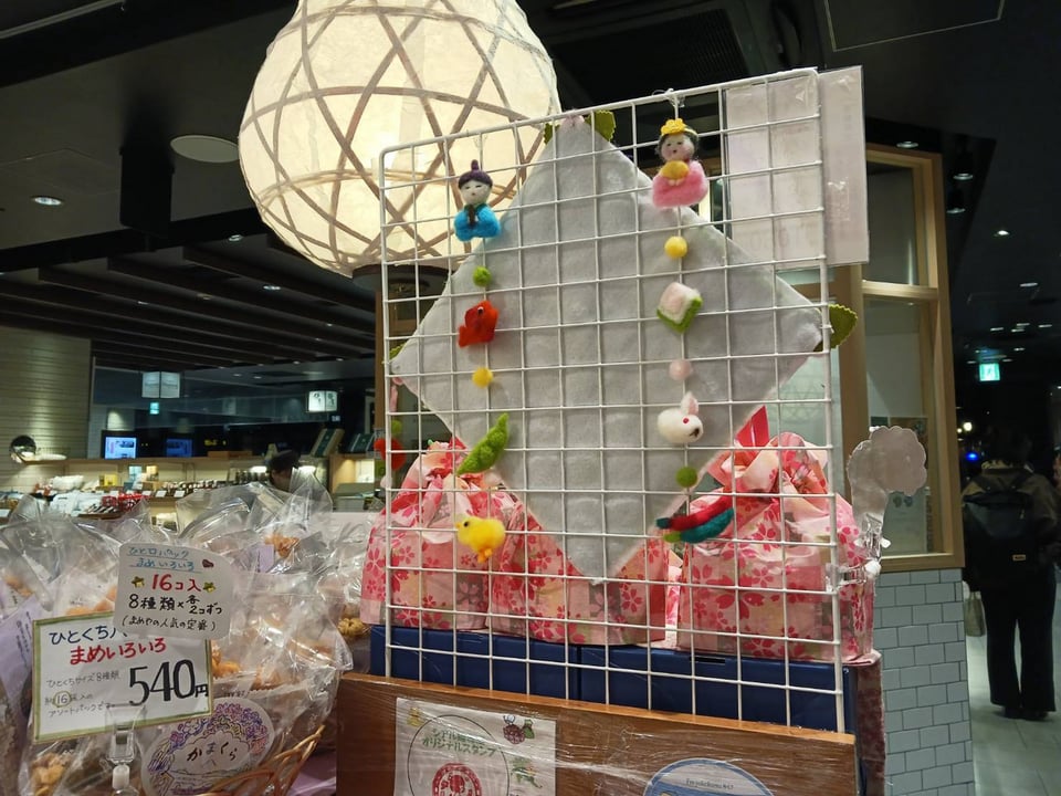 鎌倉まめやシァル鎌倉店が桃の節句バージョンに模様替えしています。![]()