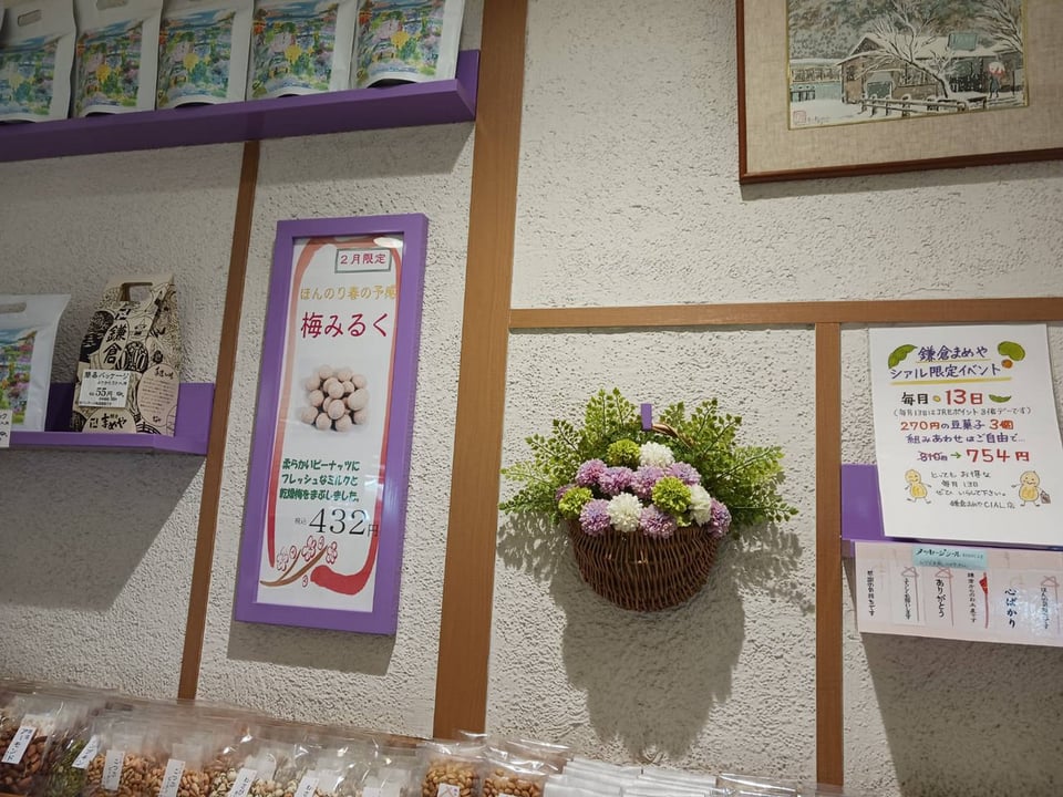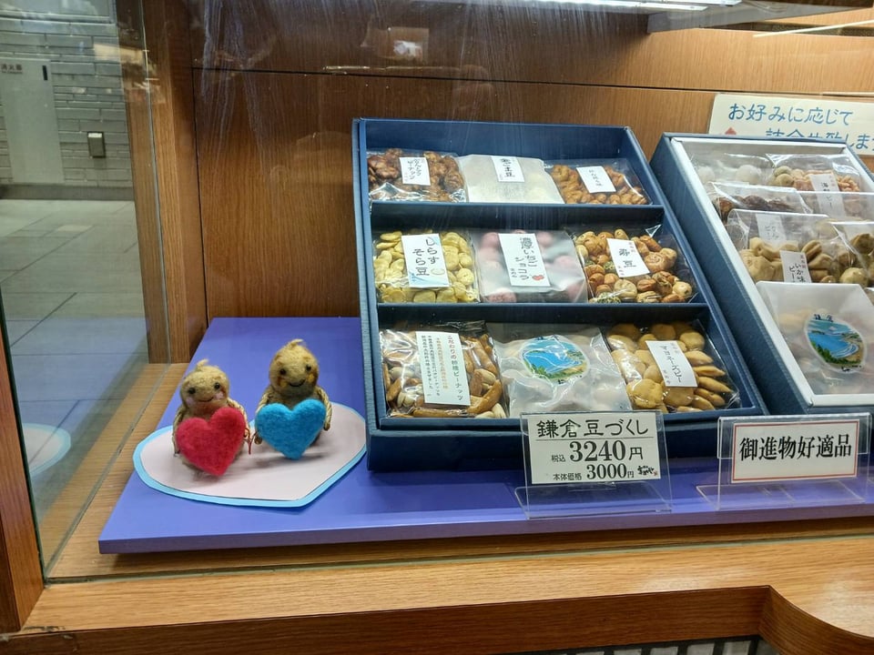 鎌倉へお越しの際には、是非、鎌倉駅の駅ビル内鎌倉まめやシァル鎌倉店のディスプレイもご覧になってくださいね。