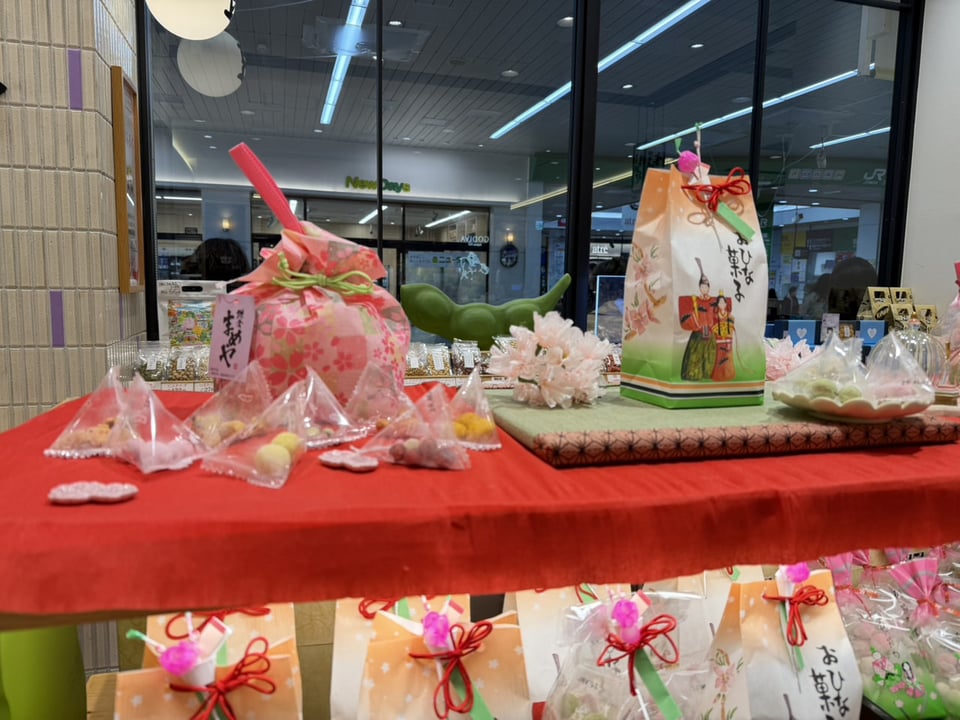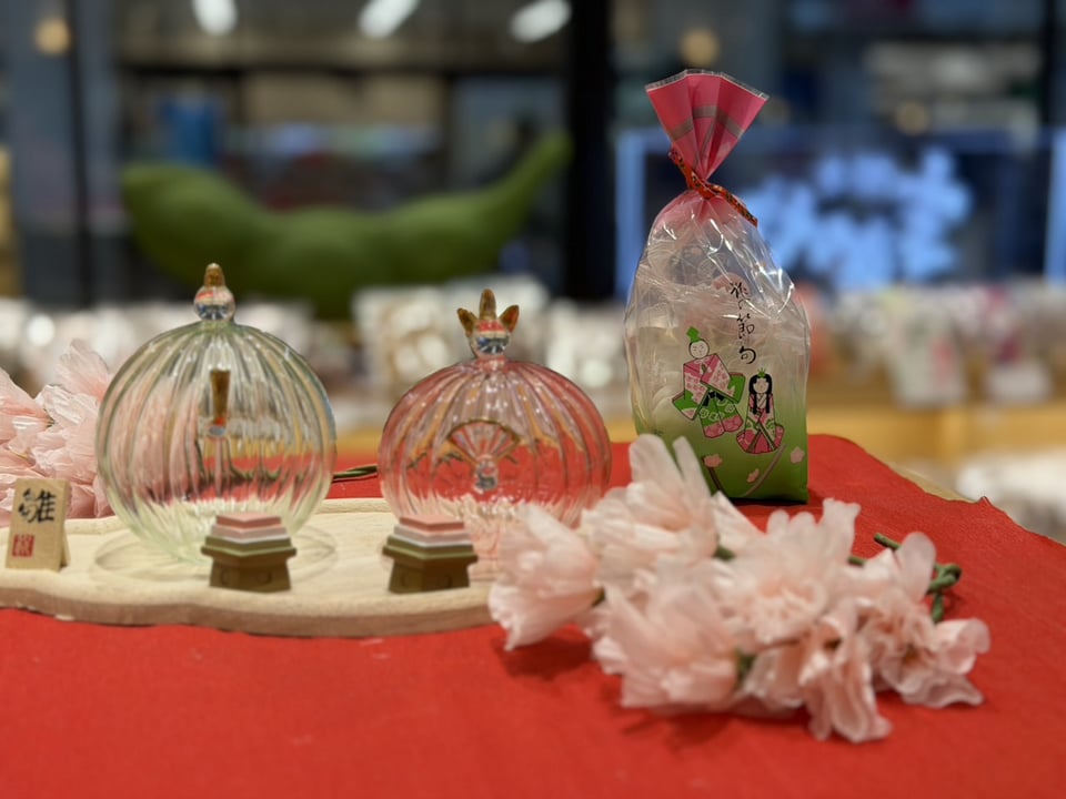 女の子の健やかな成長と健康を願うひな祭りのディスプレイは春の気配も感じさせてくれます。