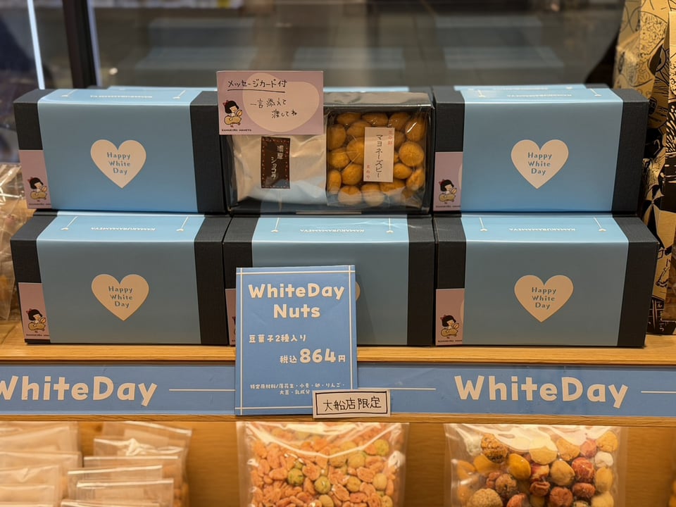そして、鎌倉まめやでは来月3月14日のホワイトデーに向けたホワイトデー商品も扱っています。