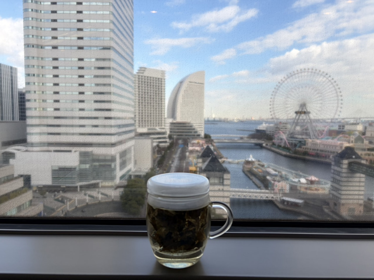 ビールではありません(笑)神田晩茶の湯気がふたに…
