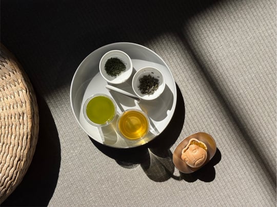 種類の日本茶やスイーツを楽しむ