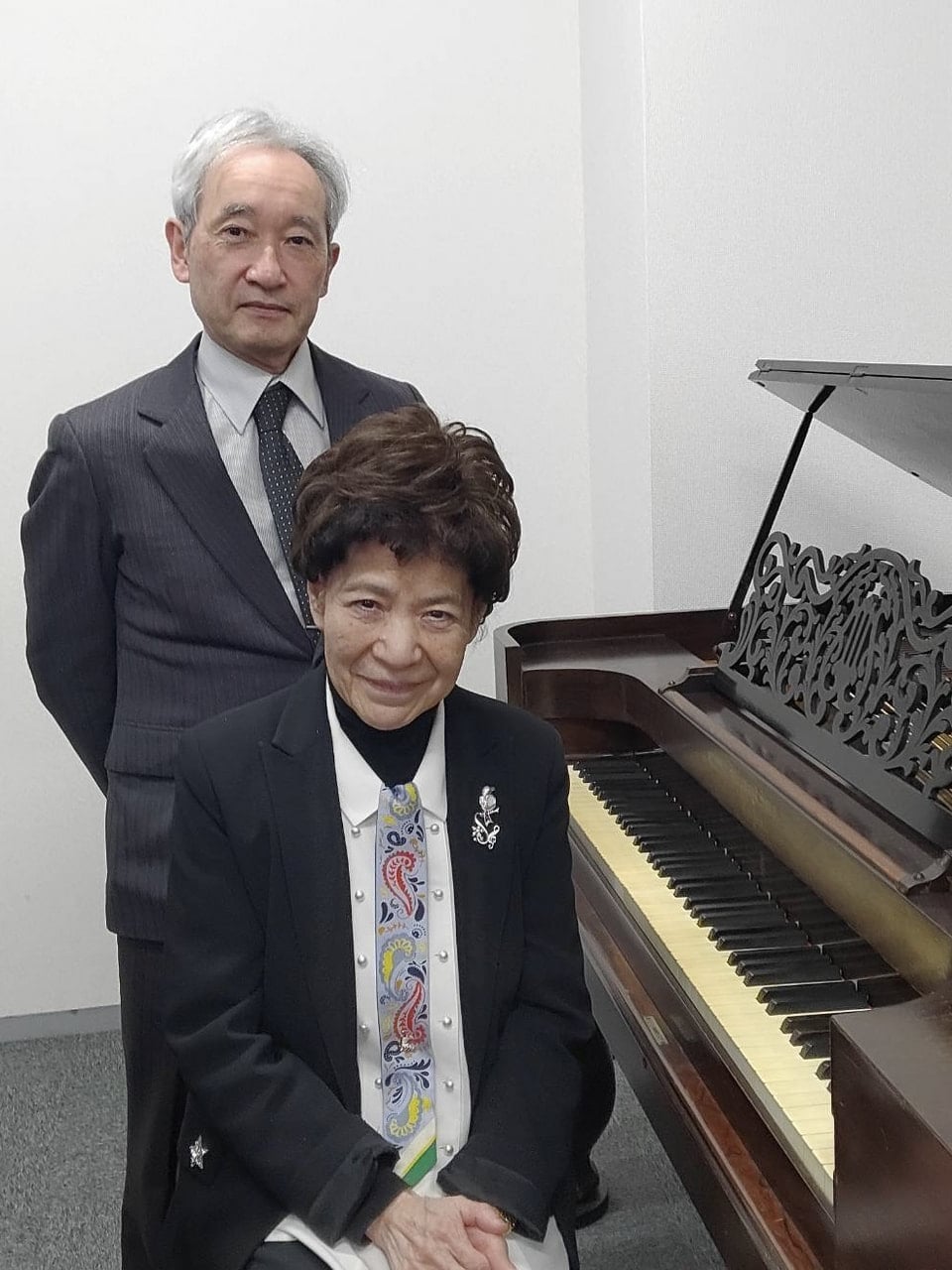 写真: 江口文子先生(前)、月刊ショパン・森田直義編集長(後ろ)