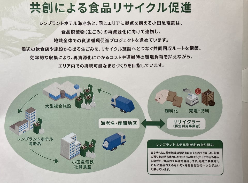・宴会場、調理場の廃棄物はリサイクルされ、豚の飼料に