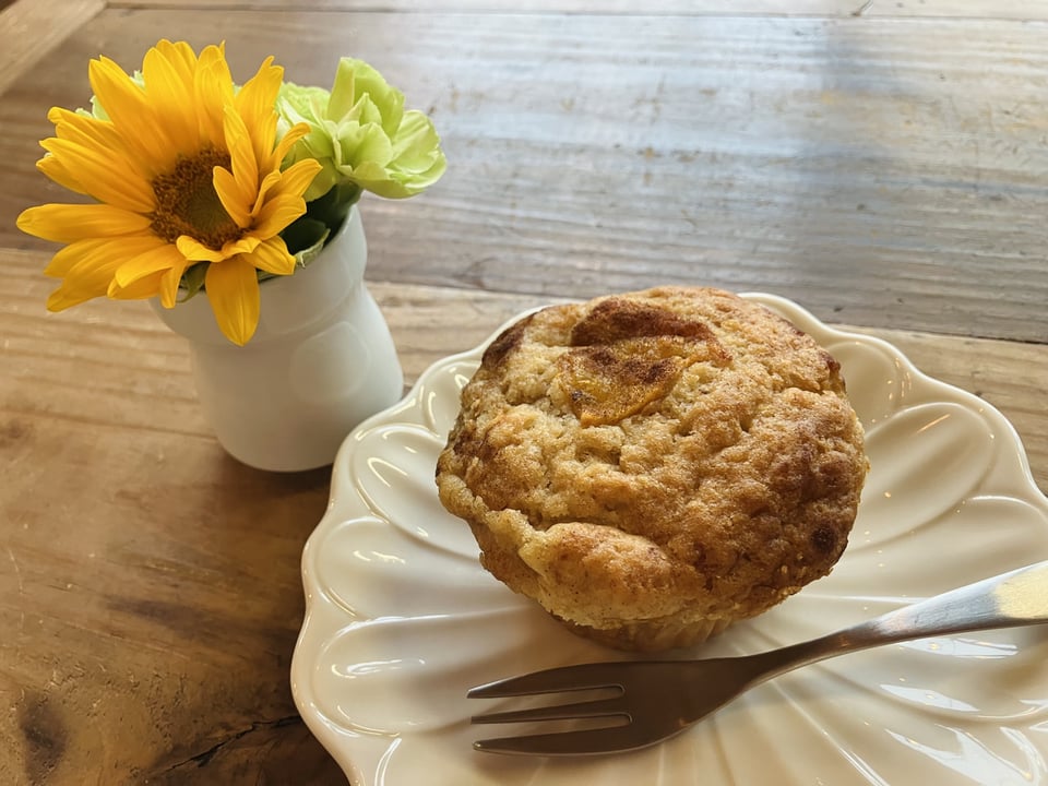 更に季節ごとに畑の自然から届けられる果物などを使った焼き菓子がオススメ。今回ご紹介いただいたのは、柿のマフィン