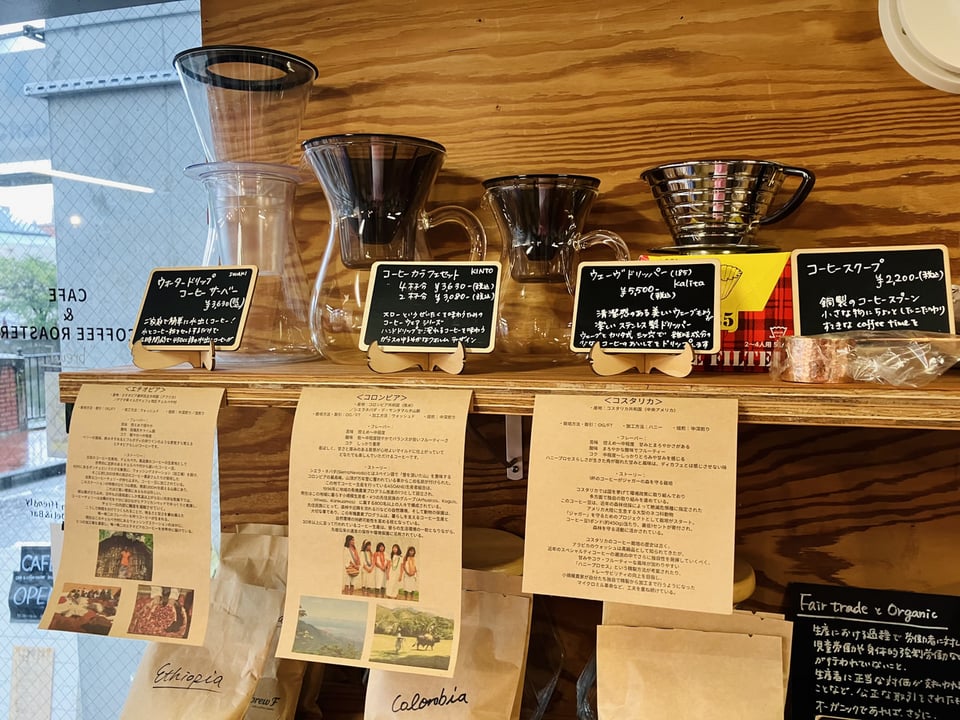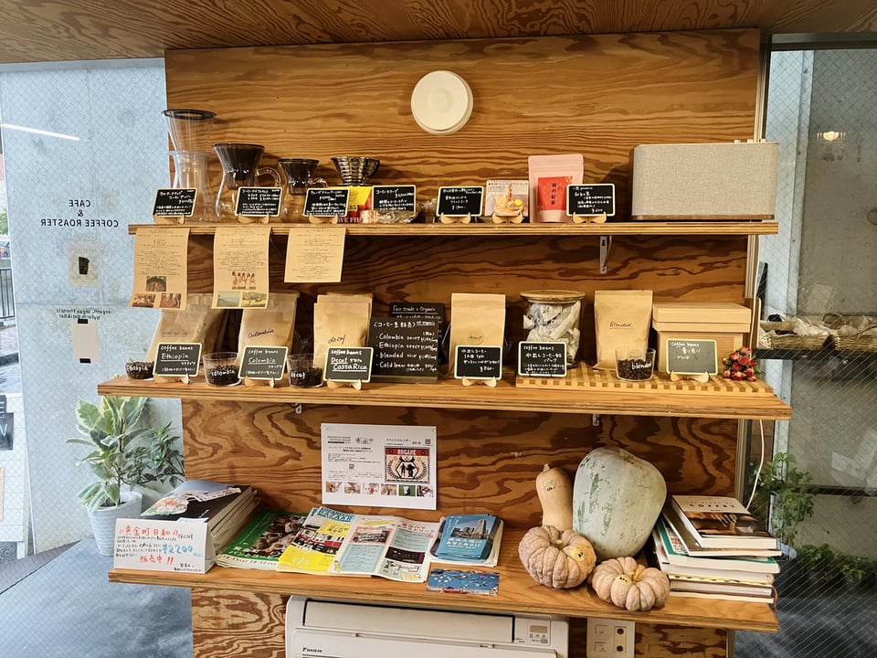 お店では「自家焙煎豆のコーヒー」と「地球にやさしい素材」を使ったメニューを提供しています。