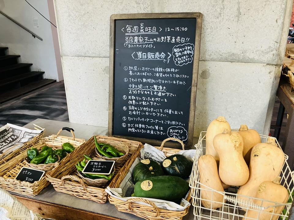 他にも、毎週火・水曜には、地元の農家で採れたオーガニック野菜を販売