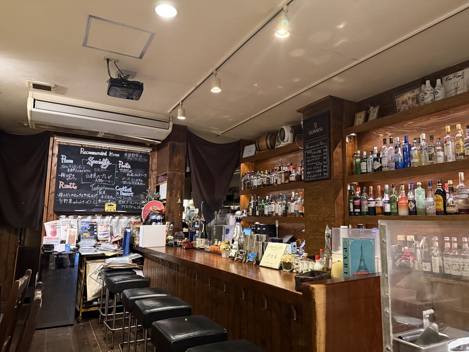 バーボンウイスキーやカクテルも楽しめるこちらのお店。カウンターもかっこいいです。テラス席もあって、ハロウィンを楽しむ子どもたちの姿もたくさん見ることができました👻可愛い…