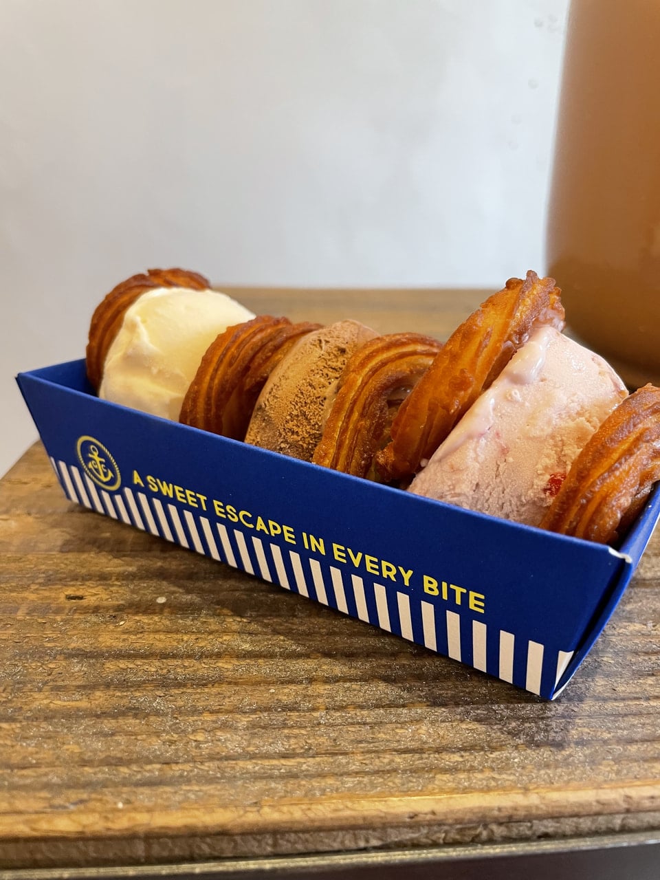 揚げたて熱々のチュロスと冷たーいアイスが美味しい化学反応!アイスの種類も3フレーバーで1セットなのでひとりでは満満満足なボリューム!🌟シェアして食べるのも楽しいですね🤩