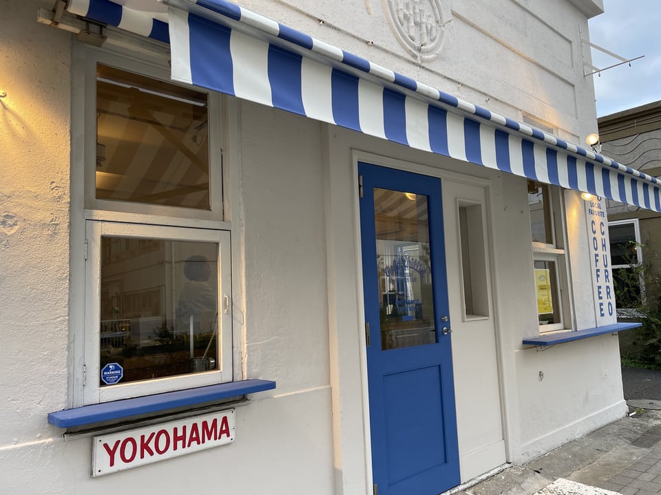 白い建物に鮮やかなブルーが港街らしさを引き立てます✨