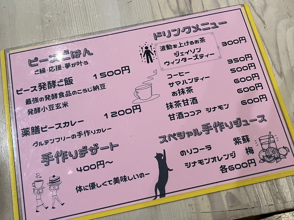 「ピースな時間」という名前には、カフェで平和な時間を過ごしてほしい。
