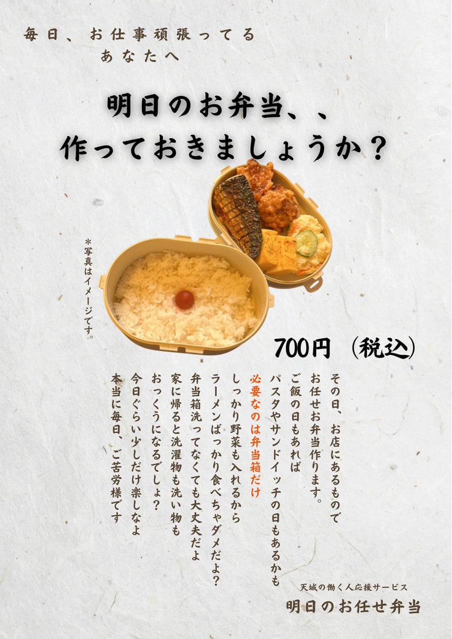 お弁当箱を持参すると、その日の食材を使って明日いただけるお弁当を作ってくれるそうです!