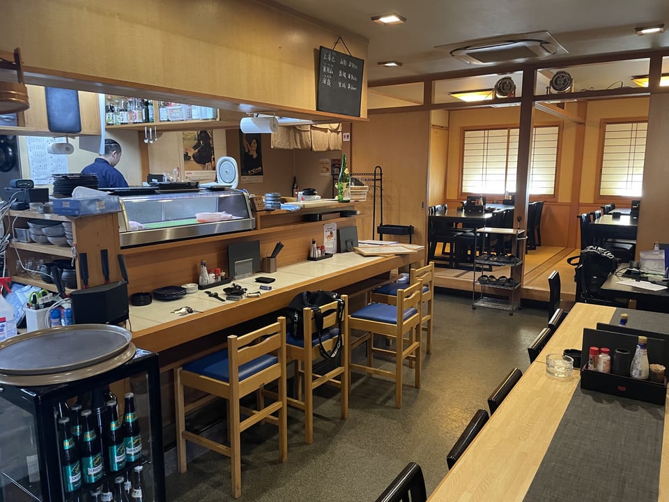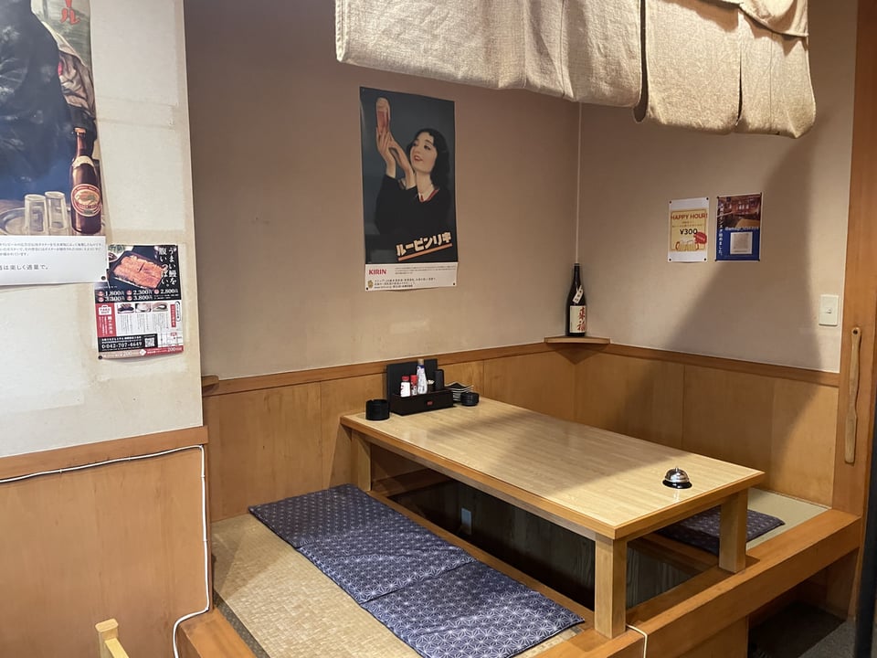 店内はカウンター、テーブル席、掘り炬燵、テーブルのお座敷など