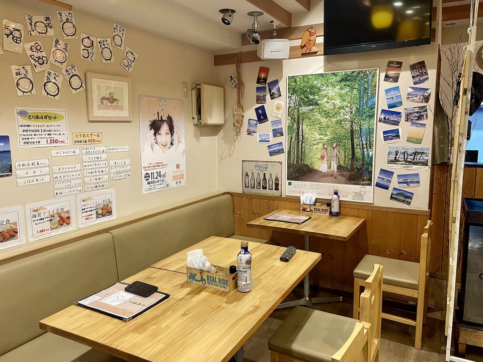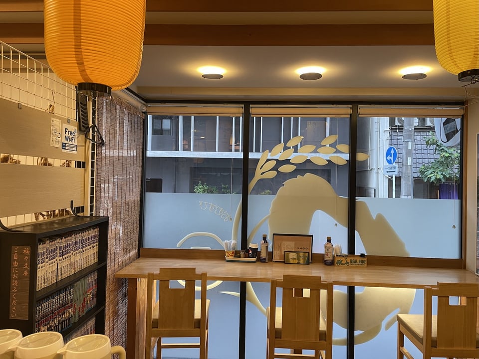 入り口には福助さんも鎮座。お客さんを優しく見守ってくれています。イラストレーターのJuju Takeshiさんのポスターも飾られた店内は、アットホームな雰囲気。