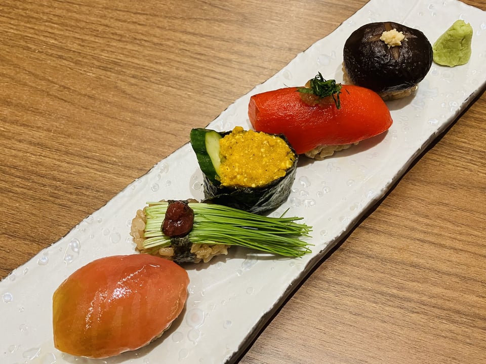 そして、メニューには、本マグロの握り比べなど通常の魚介寿司も取り扱っていますが、今回ご紹介いただいた山中さんオススメメニューは、ヴィーガン寿司(野菜寿司)