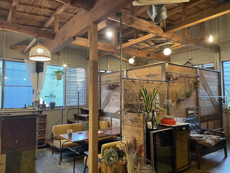 南口を出て、旭町のコンビニの2階にお店が。細い階段を登った先には、おしゃれで心地よい空間が広がっていました。ドライフラワーや木目のアクセントも素敵。タコスのキッチンカーからスタートして、縁あって厚木にお店を構える、地元の方に愛されるお店です。