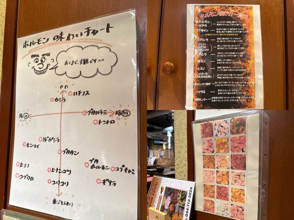 明るい店内はカップルやファミリー、女子会で賑わいます。ホルモン焼き初心者にも優しい、ご案内書も掲示されているので、ホルモンの部位や焼き方も学べちゃいます💡