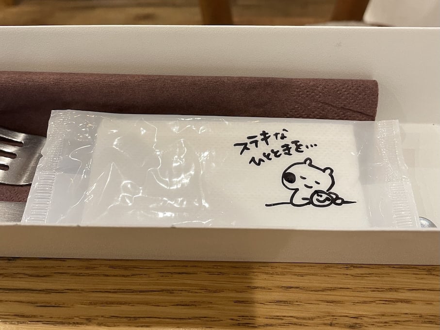 お手拭きのイラストも手描きで可愛いです。小さな心遣いも嬉しい!