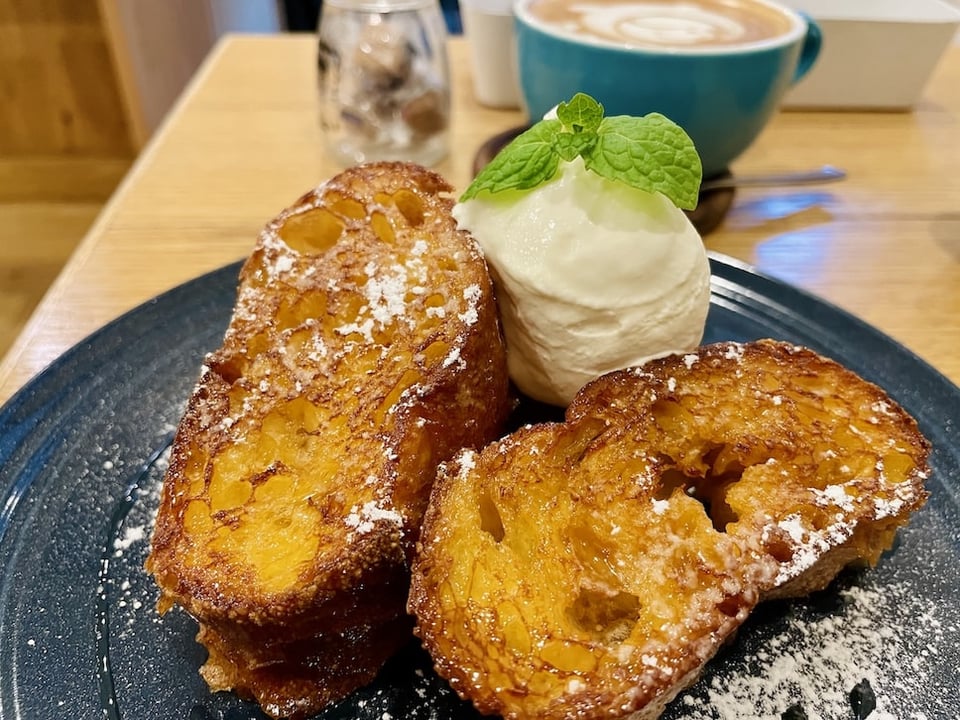 フランスパンを、相模原市産の地産卵の卵液に漬けて、外はカリッと、中はじゅわっとで仕上げた逸品。メープルシロップとバターの香りが混ざる幸せ。噛めば噛むほど、甘さが広がり美味✨✨
