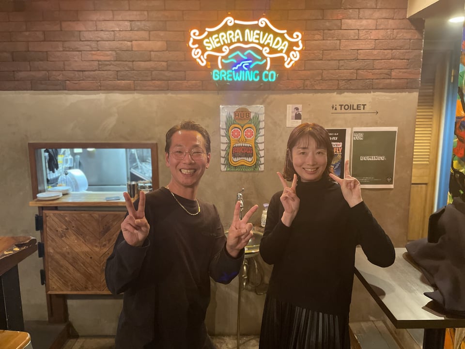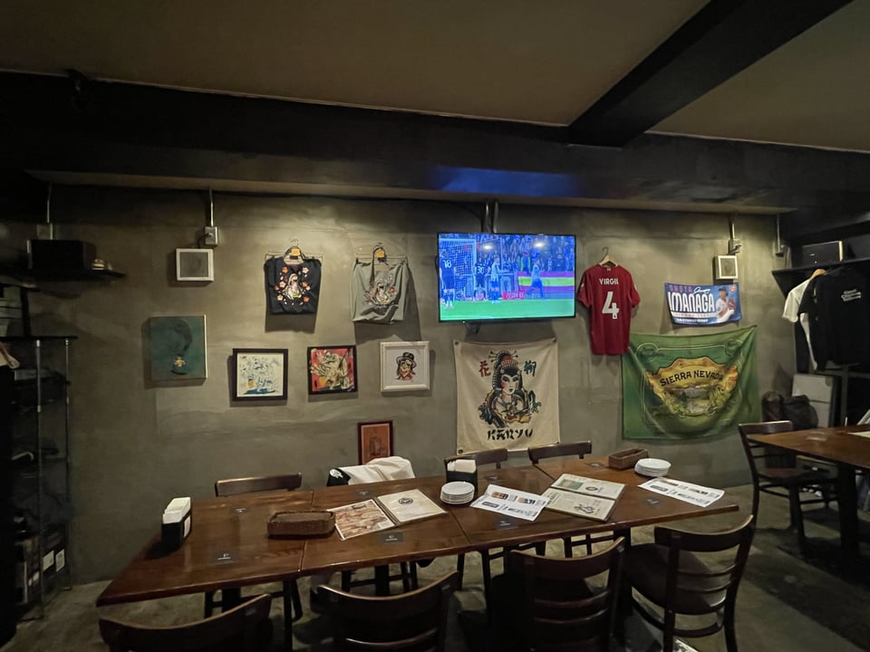 コンクリート打ちっぱなしの床に、レンガの壁。アメリカ西海岸、私は行ったことないんだけど、きっとこんなところがなんだろうなー☺️と思いながら過ごしております!リポート時間には、宴会や常連さんが集まっていて、温かい雰囲気でしたよ!