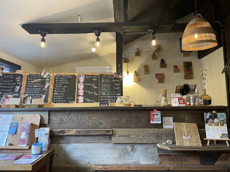 築80年を超える、平屋の古民家を改装してできたカフェは、温かみがあって心落ち着きます。奥にはアトリエもあり、愛犬を連れて遊びに行けるお店です。古民家の改装も、ぴーかんおじさん自らが手掛けました!