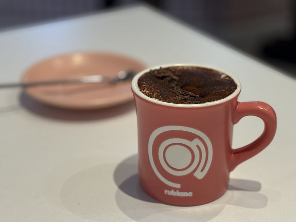 常連さんのドラフトで1位に選ばれた人気メニュー。アイスとホットがありますが、私はホットをチョイス!! かわいいピンクのルブランオリジナルマグカップで頂きました。甘さと温かさがティラミスのお布団に包まれるかのような心地よい美味しさ。コーヒー自体は自家焙煎にこだわっていますから、こちらも間違いのないお味。最後まで夢中で頂きました💫