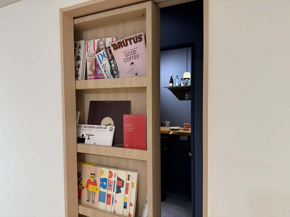 これから予約制でBAR タイムもスタートします。ピンクとベージュの可愛らしい空間の中、本棚のヒミツの扉を開くと、barカウンターが出現!